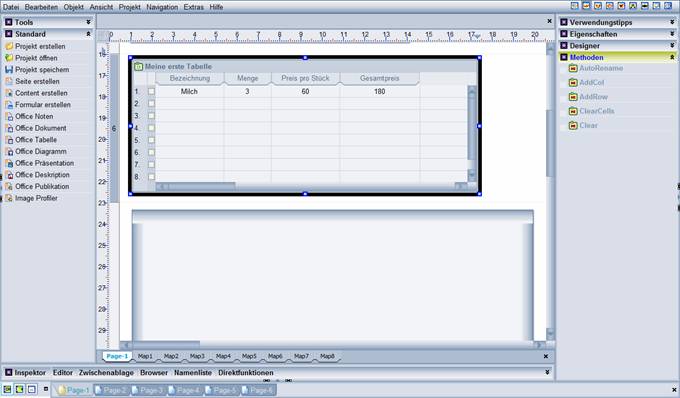(Eingabebeispiel für Zeile 1: Bezeichnung = Milch, Menge = 3, Preis pro Stück = 60, Gesamtpreis = 180)Doppelkilck auf eine Zelle. Eine Editormaske erscheint. Geben Sie anschließend den entsprechenden Text ein und bestätigen Sie mit ENTER
